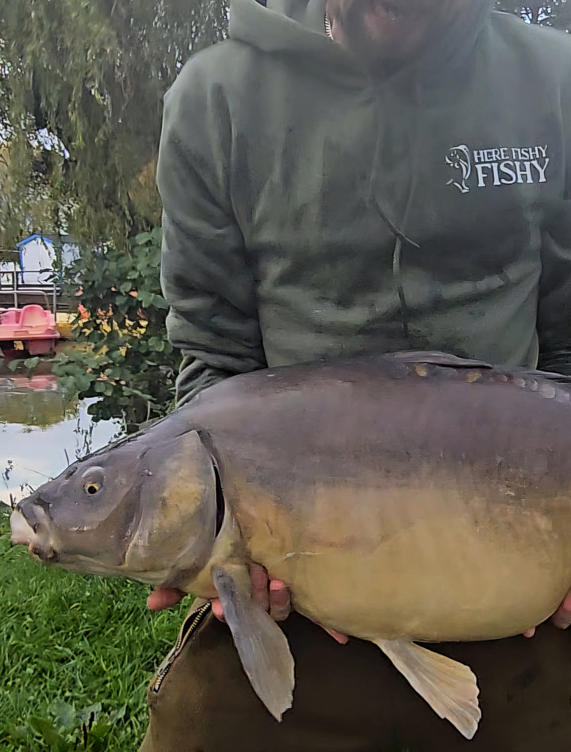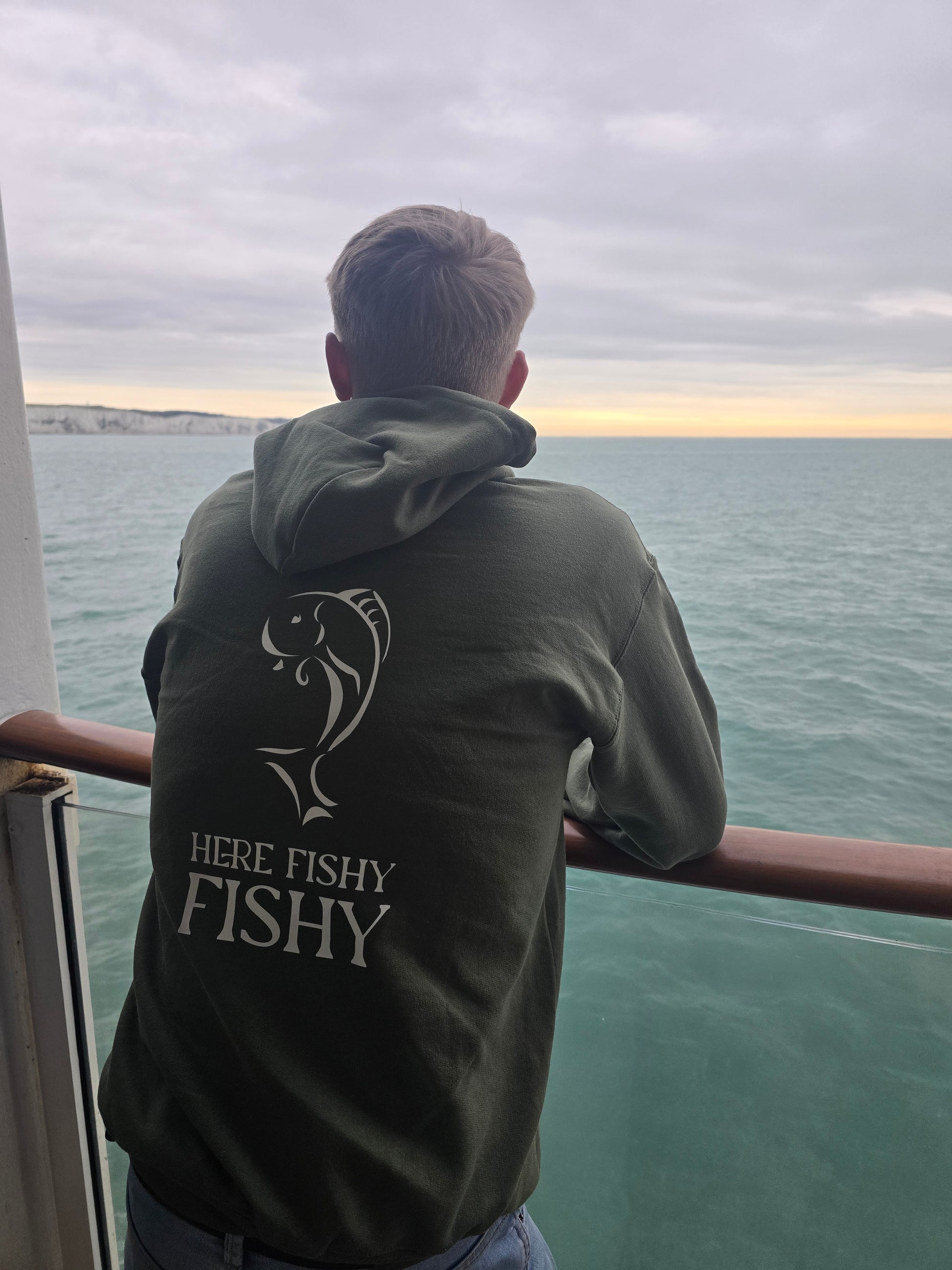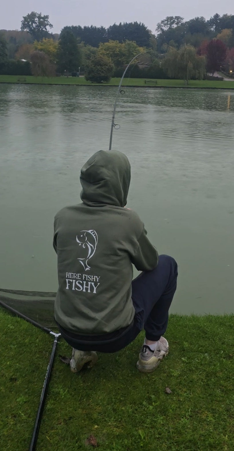 A uniquely designed hoodie, printed with 'here fishy fishy' logos on both front and back, that's a must have for any keen angler.